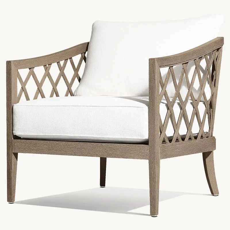 Biz tashqi stullarimiz uchun asosiy material sifatida yuqori sifatli teakni tanladik, chunki teak o'zining ajoyib ob-havoga chidamliligi va chidamliligi bilan mashhur. Ushbu yog'och tabiiy ravishda chirishga, hasharotlar hujumiga va ekstremal iqlim o'zgarishlarining ta'siriga chidamli bo'lib, tashqi makonda foydalanish paytida kafedra uzoq vaqt davomida strukturaviy yaxlitligini va ko'rinishini saqlab qolishini ta'minlaydi. Nozik hunarmandchilik har bir stulga teakning tabiiy teksturasini va issiq rangini ko'rsatishga imkon beradi va tabiiy nafislikni qo'shadi. Yostiqli ochiq yog'och stulni loyihalashda biz bo'sh joydan maksimal darajada foydalanishni to'liq ko'rib chiqdik. Kreslolarning o'lchamlari va joylashuvi hatto kichikroq tashqi makonlarda ham maksimal qulaylik va funksionallikni ta'minlash uchun ehtiyotkorlik bilan ishlab chiqilgan. Ushbu ixcham dizayn kontseptsiyasi stulni nafaqat keng bog'lar yoki hovlilar uchun, balki har bir dyuym bo'sh joydan unumli foydalanib, kichik balkonlar yoki teraslar uchun juda mos keladi.Kuchukroq qulaylik uchun stul yumshoq o'rindiq va orqa yostiqlar bilan jihozlangan. Ushbu o'rindiq va orqa yostiqlar yuqori zichlikdagi ko'pik bilan to'ldirilgan va misli ko'rilmagan qo'llab-quvvatlash va qulaylikni ta'minlash uchun ob-havoga chidamli mato bilan qoplangan. Tinch tushdan keyin rohatlanasizmi yoki oilangiz va do'stlaringiz bilan dam olasizmi, bu yostiqlar sizga va mehmonlaringizga imkon qadar qulay tajribaga ega bo'lishingizni ta'minlaydi.