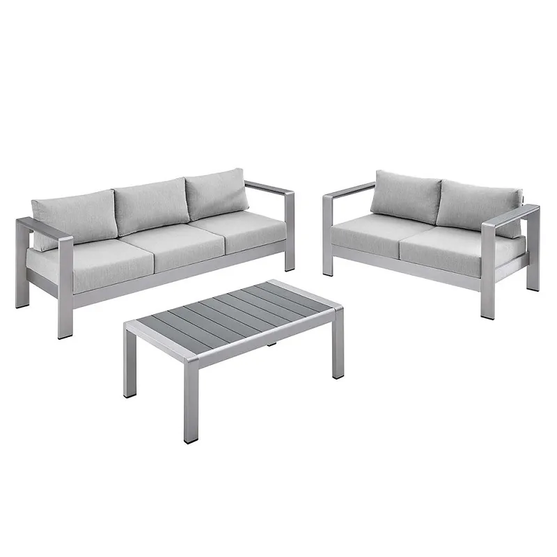 Bizning 3 qismli ochiq divanimiz bilan ochiq havoda yashash tajribangizni oshiring. Ushbu ajoyib to'plam har qanday tashqi muhitda dam olish va ko'ngil ochish uchun eng zo'r joyni ta'minlab, uslub va funksionallikni taklif qilish uchun mo'ljallangan. Bardoshli alyuminiydan tayyorlangan bu divan to'plami zamonaviy va jozibali ko'rinishni saqlab, elementlarga bardosh berish uchun qurilgan.