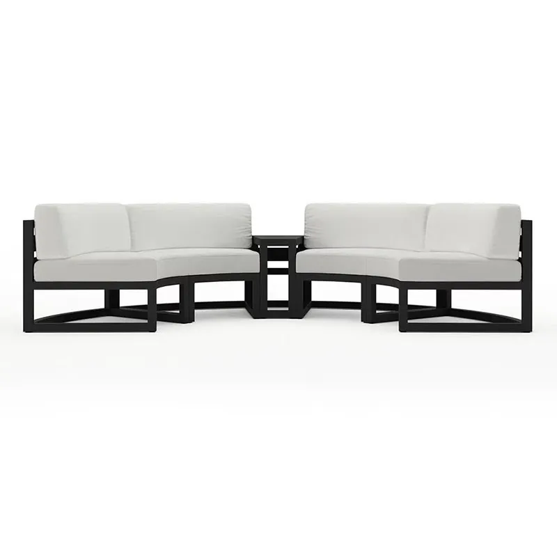 Ushbu ochiq divanning yarim dumaloq dizayni mehmonlarni ko'ngil ochish yoki ochiq havoda sokin oqshom o'tkazish uchun juda mos keladigan jozibali muhit yaratadi. Uning egri shakli tashqi makoningizning vizual jozibasini oshiradi va uni har qanday veranda yoki bog'ning markaziga aylantiradi. Ushbu dizayn nafaqat chiroyli ko'rinishga ega, balki yashash joyini maksimal darajada kengaytiradi, bu esa hali ham keng o'tirish imkoniyatlarini xohlaydigan cheklangan joylarga ega bo'lganlar uchun amaliy tanlovdir.